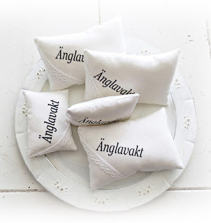 med söt text Änglavakt, lite spets och en liten ros.